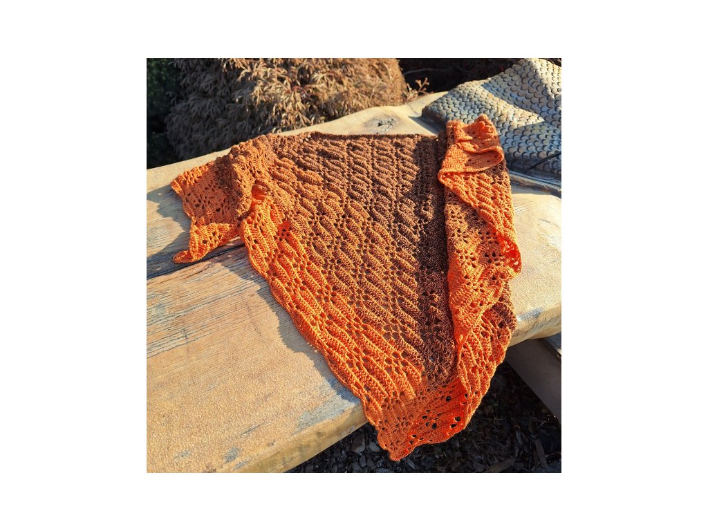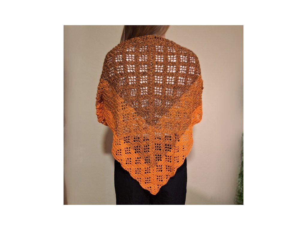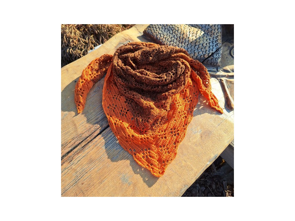 Vneste do svého podzimu teplou paletu barev! Tento jemně uháčkovaný šátek v elegantní kombinaci oranžové a hnědé je ideální pro chladnější dny.