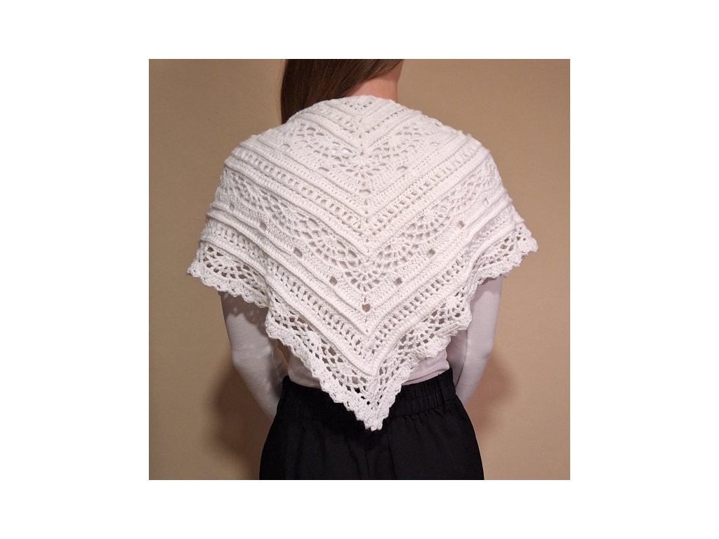 Háčkovaný šátek Dotek sněhu