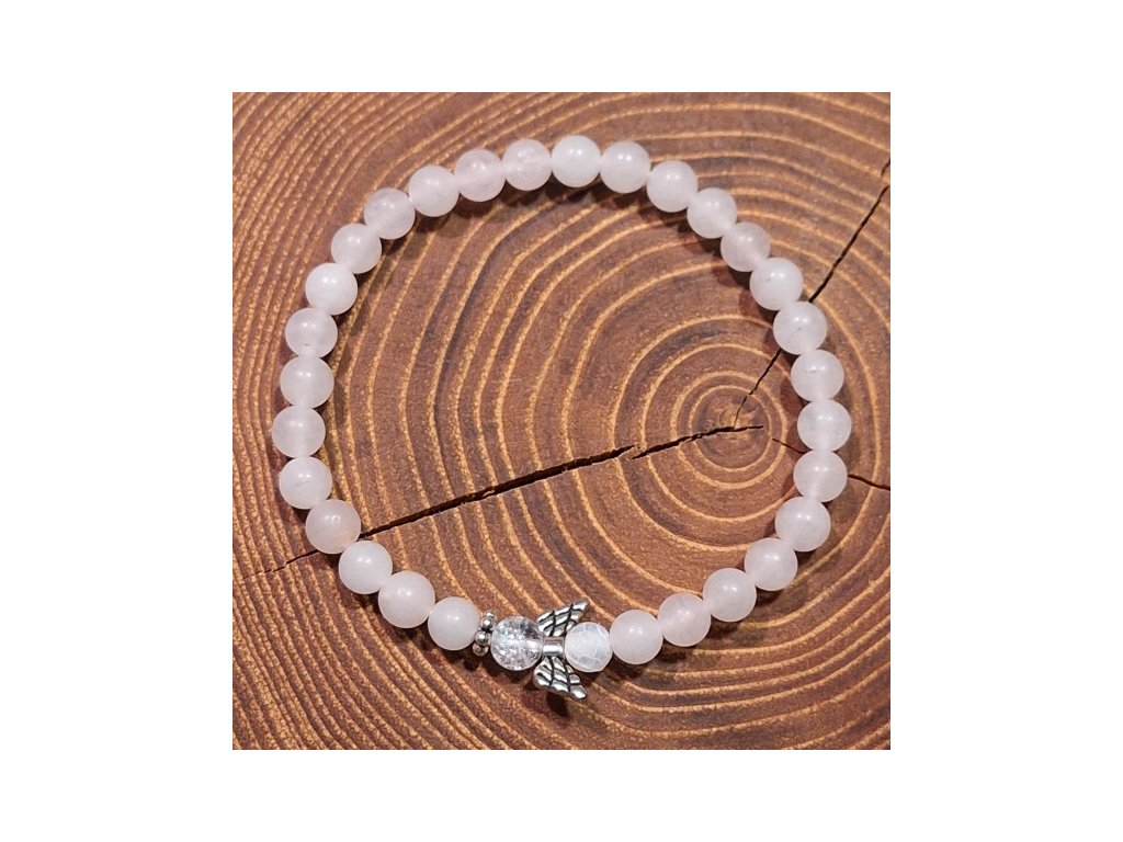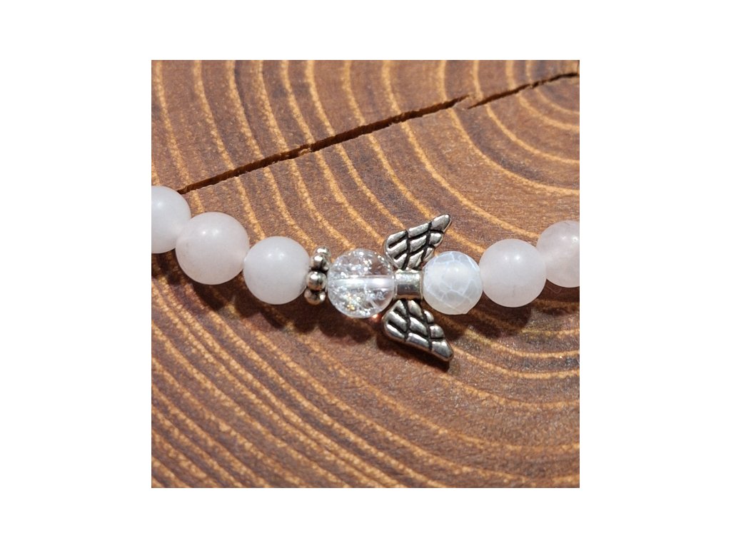 Jemně čistí energii, přináší klid a zesiluje působení růženínu. Andílek uprostřed náramku je symbolem ochrany, víry a duchovního vedení.