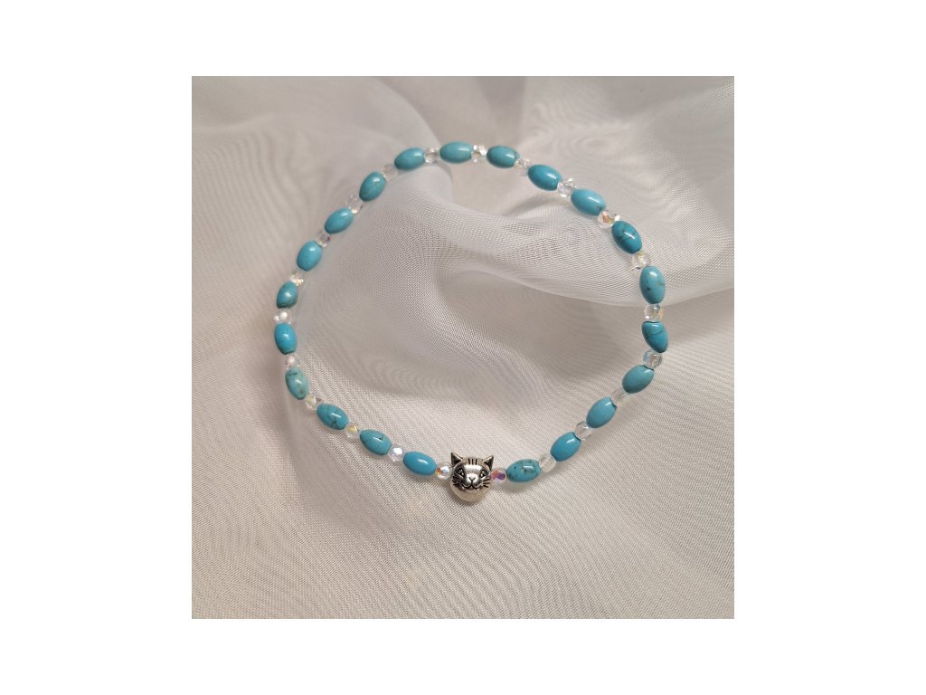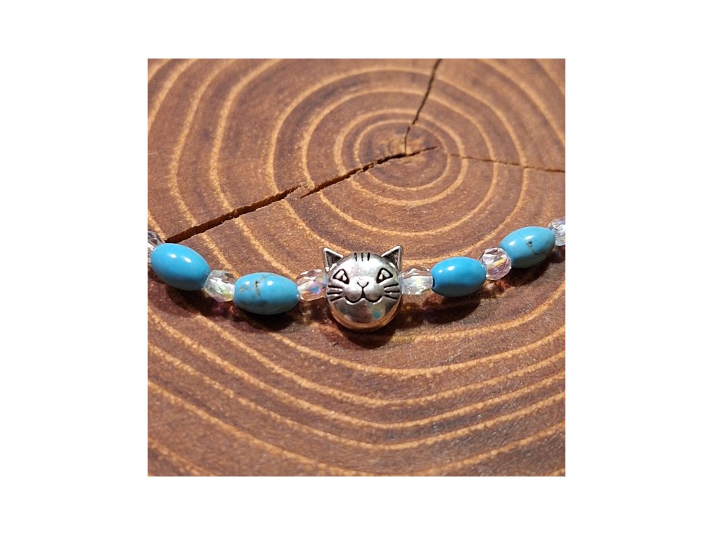 Náramek je doplněn kovovým komponentem - hlava kočičky.