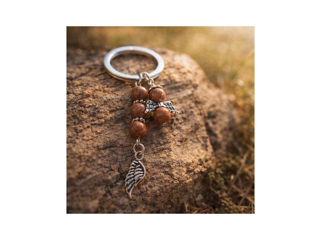 Ručně vyráběný přívěsek s kamenem zlatý aventurín přináší radost, štěstí 🍀 a vnitřní rovnováhu. Teplé třpytivé tóny kamene se krásně pojí s kovovými detaily – křídly 🪽, andělským pírkem a jemnými ozdobnými prvky, které symbolizují světlo a pozitivní energii 🌞.